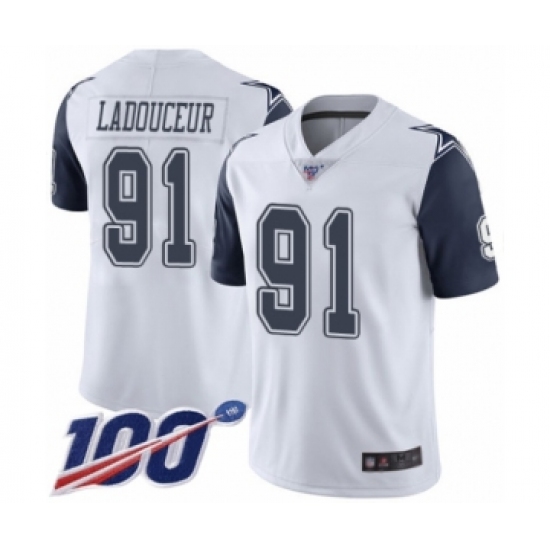 Youth Dallas Cowboys #91 L. P. Ladouceur Limited White Rush Vapor Untouchable 100th Season Football Jersey