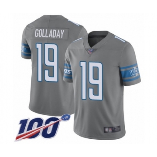 >Youth Detroit Lions #19 Kenny Golladay Limited Steel Rush Vapor Untouchable 100th Season Football Jersey
