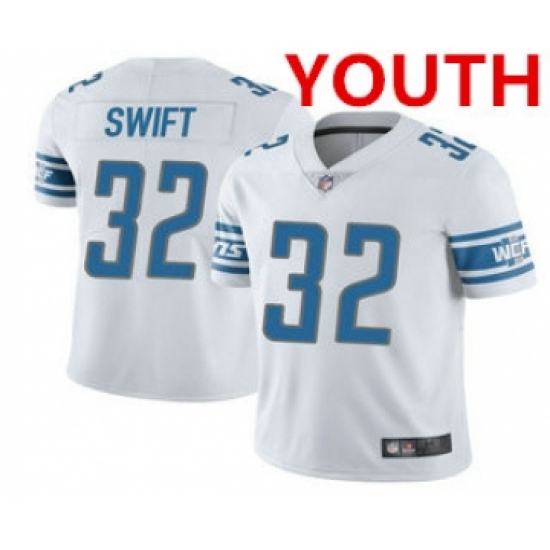 >Youth Detroit Lions #32 DAndre Swift White Vapor Untouchable Limited Stitched NFL Jersey