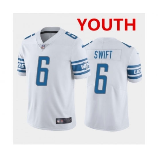 >Youth Detroit Lions #6 D'Andre Swift White Vapor Untouchable Limited Stitched Jersey