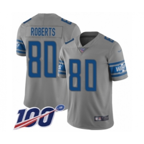 >Youth Detroit Lions #80 Michael Roberts Limited Gray Inverted Legend 100th Season Football Jersey