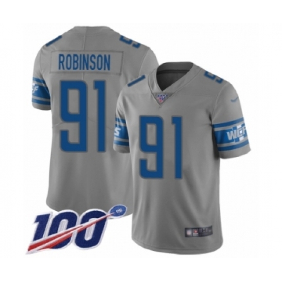 >Youth Detroit Lions #91 A'Shawn Robinson Limited Gray Inverted Legend 100th Season Football Jersey