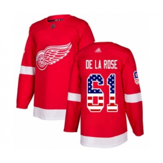 Youth Detroit Red Wings #61 Jacob de la Rose Authentic Red USA Flag Fashion Hockey Jersey