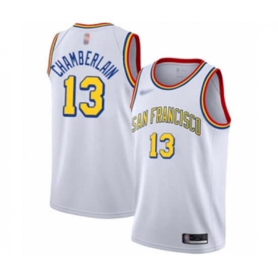 Men's Nike Golden State Warriors #13 Wilt Chamberlain Authentic White Hardwood Classics 2018 NBA Finals Bound NBA Jersey