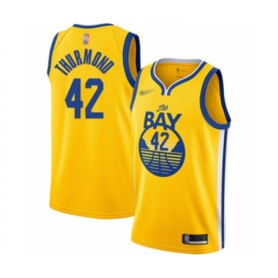 Men's Golden State Warriors #42 Nate Thurmond Yellow Swingman 2019 Basketball Finals Bound Jersey - Earned Edition