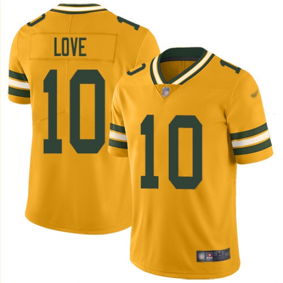 Youth Green Bay Packers #10 Jordan Love Yellow Stitched NFL Limited Rush 100th Season Jersey