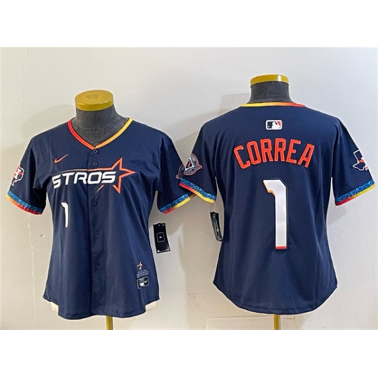 >Youth Houston Astros #1 Carlos Correa Navy 2025 City Connect With Texas Limited Stitched Baseball Jersey