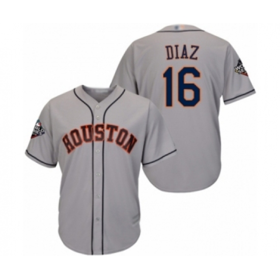 >Youth Houston Astros #16 Aledmys Diaz Authentic Grey Road Cool Base 2019 World Series Bound Baseball Jersey