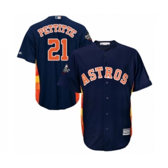 Men's Majestic Houston Astros #21 Andy Pettitte Replica Navy Blue Alternate 2017 World Series Champions Cool Base MLB Jersey