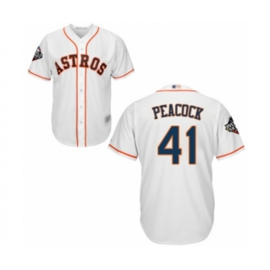 >Youth Houston Astros #41 Brad Peacock Authentic White Home Cool Base 2019 World Series Bound Baseball Jersey