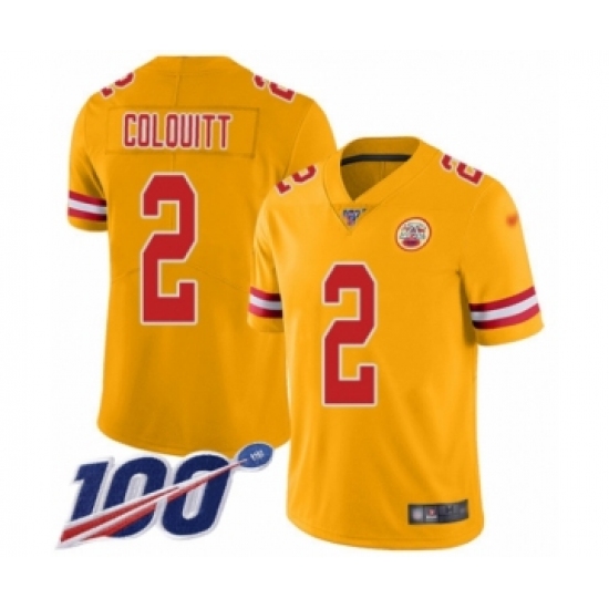 Youth Kansas City Chiefs #2 Dustin Colquitt Limited Gold Inverted Legend 100th Season Football Jersey