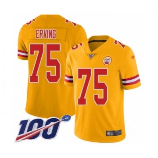 >Youth Kansas City Chiefs #75 Cameron Erving Limited Gold Inverted Legend 100th Season Football Jersey