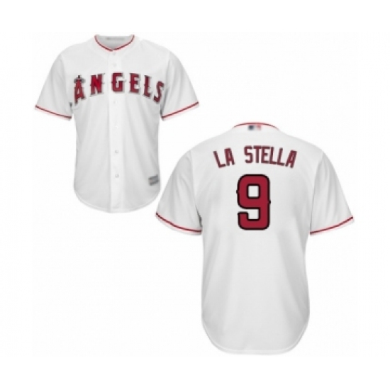 >Youth Los Angeles Angels of Anaheim #9 Tommy La Stella Authentic White Home Cool Base Baseball Jersey