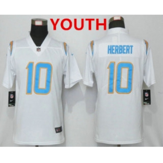 >Youth Los Angeles Chargers #10 Justin Herbert White 2020 NEW Vapor Untouchable Stitched NFL Nike Limited Jersey