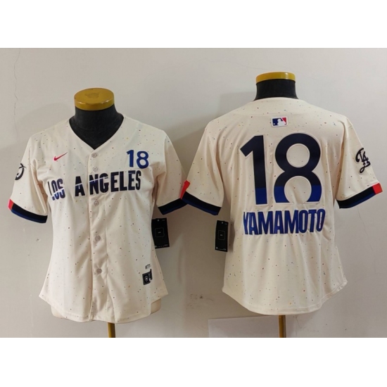 >Youth Los Angeles Dodgers #18 Yoshinobu Yamamoto Cream 2024 City Connect Limited Jersey