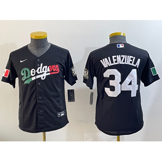 >Youth Los Angeles Dodgers #34 Fernando Valenzuela Black Mexico 2020 World Series Cool Base Nike Jersey