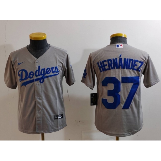 >Youth Los Angeles Dodgers #37 Teoscar Hernandez Grey Cool Base Stitched Jersey