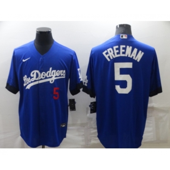 Mens Los Angeles Dodgers #5 Freddie Freeman White Blue Split Cool Base Stitched Baseball Jersey