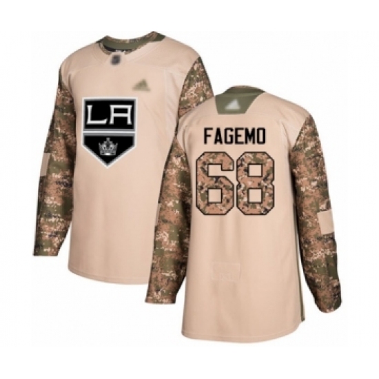 >Youth Los Angeles Kings #68 Samuel Fagemo Authentic Camo Veterans Day Practice Hockey Jersey