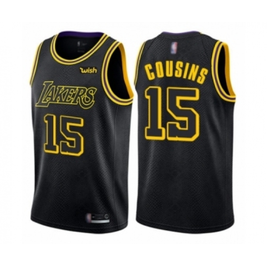 >Youth Los Angeles Lakers #15 DeMarcus Cousins Swingman Black Basketball Jersey - City Edition