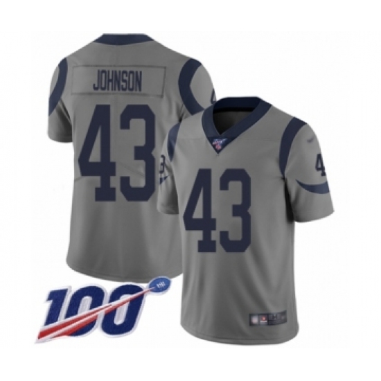 >Youth Los Angeles Rams #43 John Johnson Limited Gray Inverted Legend 100th Season Football Jersey