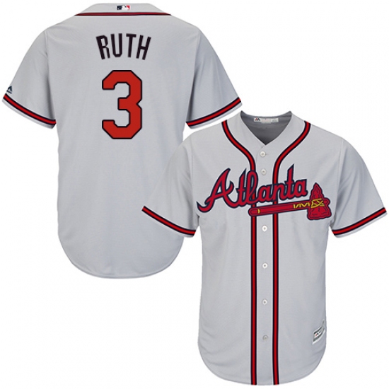 Youth Majestic Atlanta Braves #3 Babe Ruth Authentic Grey Road Cool Base MLB Jersey