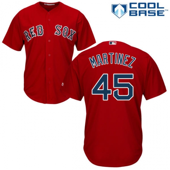 Home>MLB>Boston Red Sox>Pedro Martinez>Youth Majestic Boston Red Sox #45 Pedro Martinez Replica Red Alternate Home Cool Base MLB Jersey