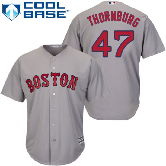 >Youth Majestic Boston Red Sox #47 Tyler Thornburg Authentic Grey Road Cool Base 2018 World Series Champions MLB Jersey