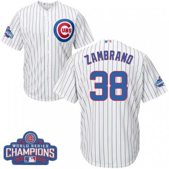 Home>MLB>Chicago Cubs>Carlos Zambrano>Youth Majestic Chicago Cubs #38 Carlos Zambrano Authentic White Home 2016 World Series Champions Cool Base MLB Jersey