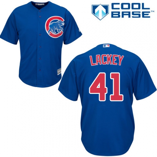 Home>MLB>Chicago Cubs>John Lackey>Youth Majestic Chicago Cubs #41 John Lackey Authentic Royal Blue Alternate Cool Base MLB Jersey