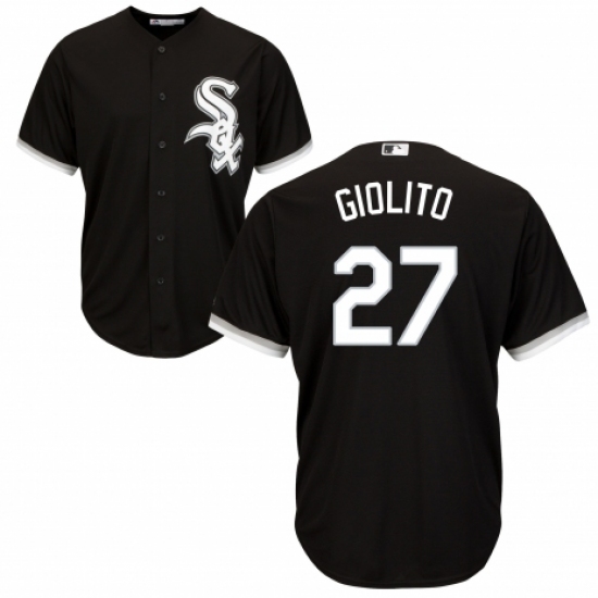 >Youth Majestic Chicago White Sox #27 Lucas Giolito Replica Black Alternate Home Cool Base MLB Jersey