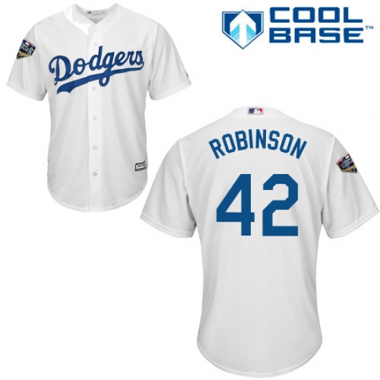 Youth Majestic Los Angeles Dodgers #42 Jackie Robinson Authentic White Home Cool Base 2018 World Series MLB Jersey