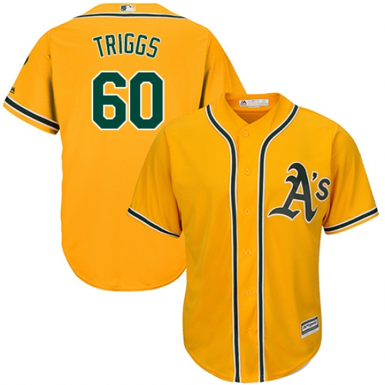 Home>MLB>Oakland Athletics>Andrew Triggs>Youth Majestic Oakland Athletics #60 Andrew Triggs Authentic Gold Alternate 2 Cool Base MLB Jersey