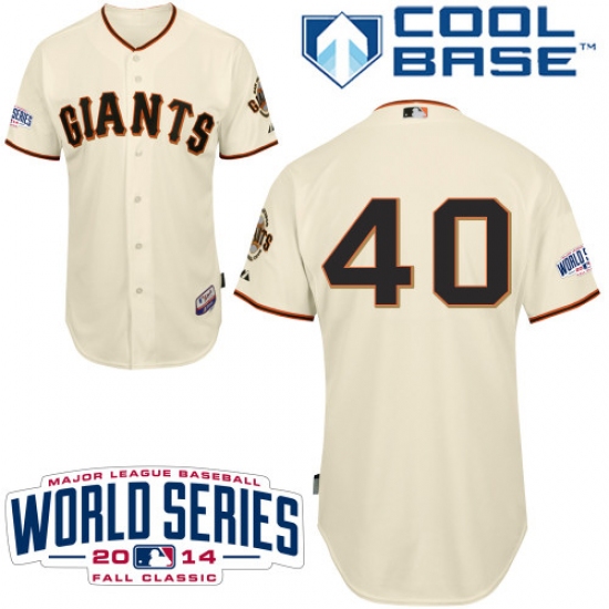 Youth Majestic San Francisco Giants #40 Madison Bumgarner Authentic Cream Home Cool Base 2014 World Series Patch MLB Jersey