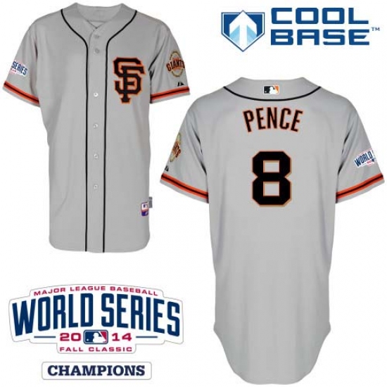 Home>MLB>San Francisco Giants>Hunter Pence>Youth Majestic San Francisco Giants #8 Hunter Pence Authentic Grey Road 2 Cool Base w/2014 World Series Patch MLB Jersey