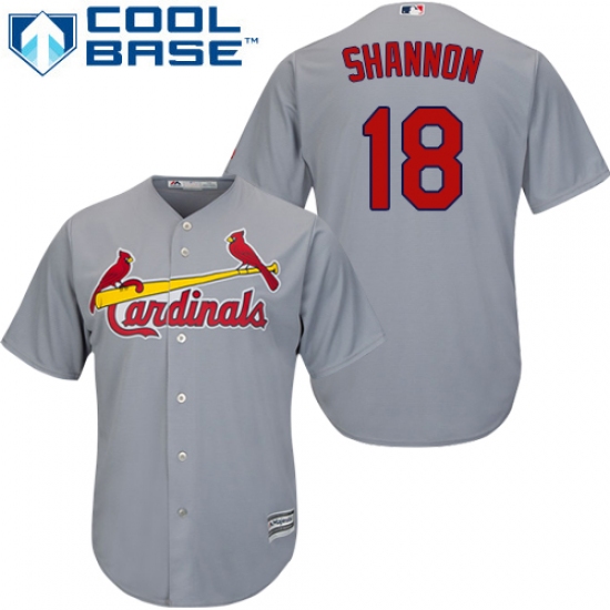 Home>MLB>St. Louis Cardinals>Mike Shannon>Youth Majestic St. Louis Cardinals #18 Mike Shannon Authentic Grey Road Cool Base MLB Jersey