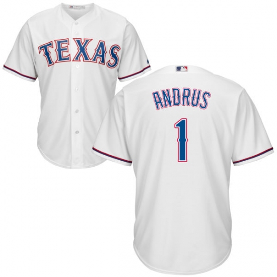 Home>MLB>Texas Rangers>Elvis Andrus>Youth Majestic Texas Rangers #1 Elvis Andrus Authentic White Home Cool Base MLB Jersey