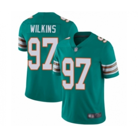 >Youth Miami Dolphins #97 Christian Wilkins Aqua Green Alternate Vapor Untouchable Limited Player Football Jersey