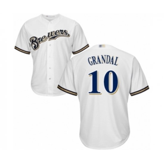 Youth Milwaukee Brewers #10 Yasmani Grandal Replica White Home Cool Base Baseball Jersey