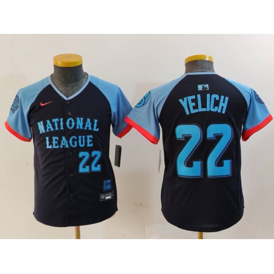 Youth Milwaukee Brewers #22 Christian Yelich Number Navy 2024 All Star Limited Stitched Jerseys