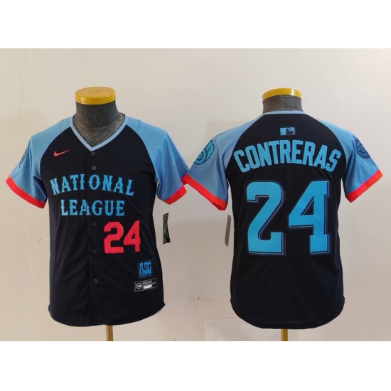 >Youth Milwaukee Brewers #24 William Contreras Number Navy 2024 All Star Limited Stitched Jerseys