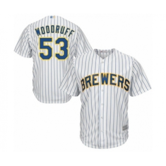 >Youth Milwaukee Brewers #53 Brandon Woodruff Authentic White Home Cool Base Baseball Jersey