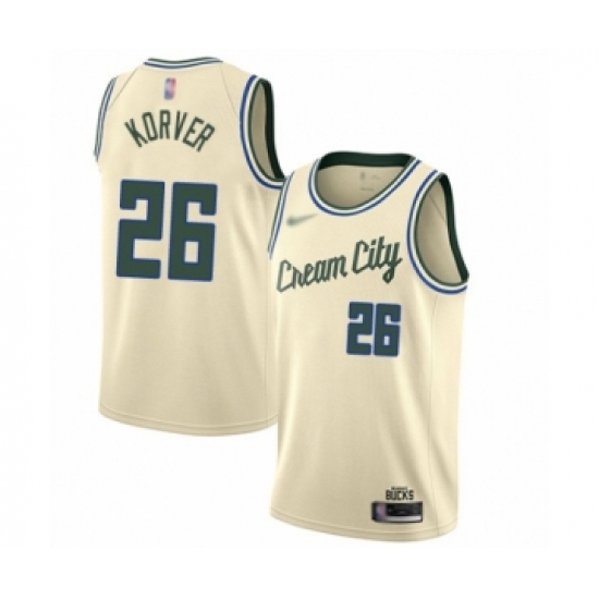 >Youth Milwaukee Bucks #26 Kyle Korver Swingman Cream Basketball Jersey - 2019 20 City Edition