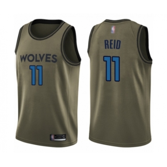 >Youth Minnesota Timberwolves #11 Naz Reid Swingman Green Salute to Service Basketball Jersey