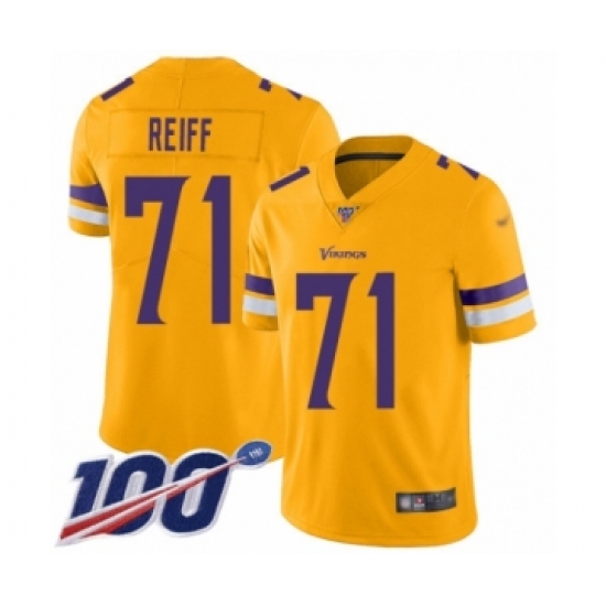 Men's Minnesota Vikings #71 Riley Reiff Limited Gold Inverted Legend 100th Season Football Jersey