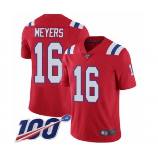 >Youth New England Patriots #16 Jakobi Meyers Red Alternate Vapor Untouchable Limited Player 100th Season Football Jersey