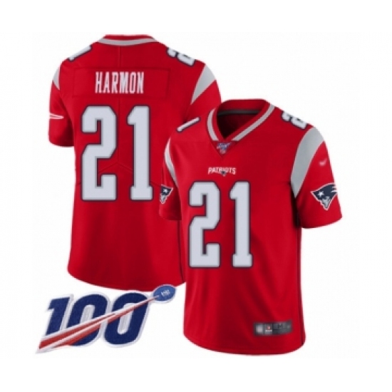>Youth New England Patriots #21 Duron Harmon Limited Red Inverted Legend 100th Season Football Jersey