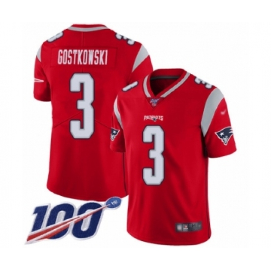 Men's New England Patriots #3 Stephen Gostkowski Limited Red Inverted Legend 100th Season Football Jersey
