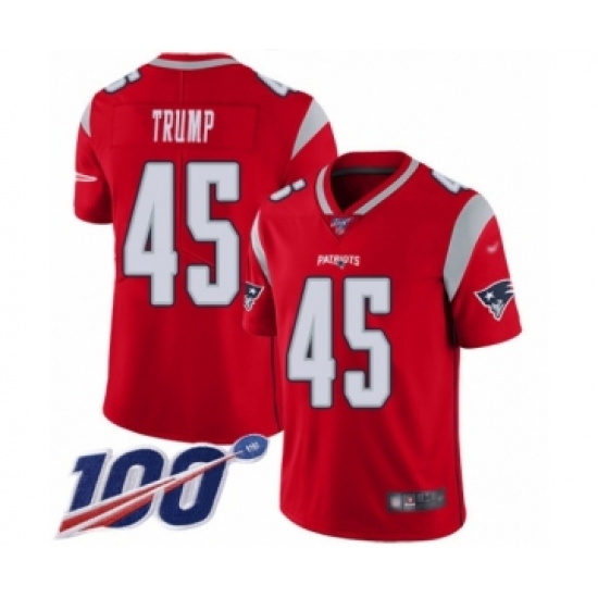 >Youth New England Patriots #45 Donald Trump Limited Red Inverted Legend 100th Season Football Jersey