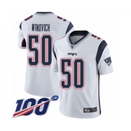 >Youth New England Patriots #50 Chase Winovich White Vapor Untouchable Limited Player 100th Season Football Jersey
